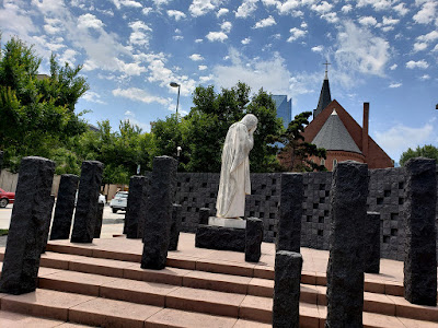The sculpture at the Oklahoma Bombing Memorial is eloquent! I stood before it deeply contemplating on the mind of my Lord! In 1995, domestic terrorists Timothy McVeigh and Terry Nichols exploded the Federal building in Oklahoma City where 168 people including children died. The explosion injured more than 600 people. At the far end of the memorial stands the sculpture titled “Jesus Wept.” It depicts Jesus with his face covered in his palm, turned away from the site. It tells it all, the one who embraced death on Calvary-cross to raze down the wall of enmity and hatred is weeping and calls us to weep over the violence that is in the DNA of the unredeemed humankind.
